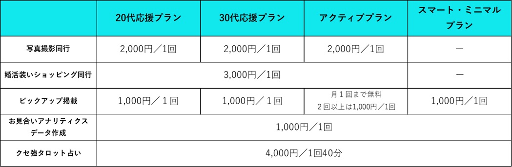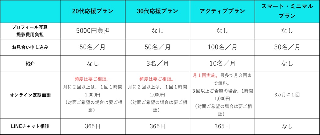 - 20代応援プランにはプロフィール写真撮影代金一部負担サービス実施中!(指定フォトスタジオでの撮影に限ります)